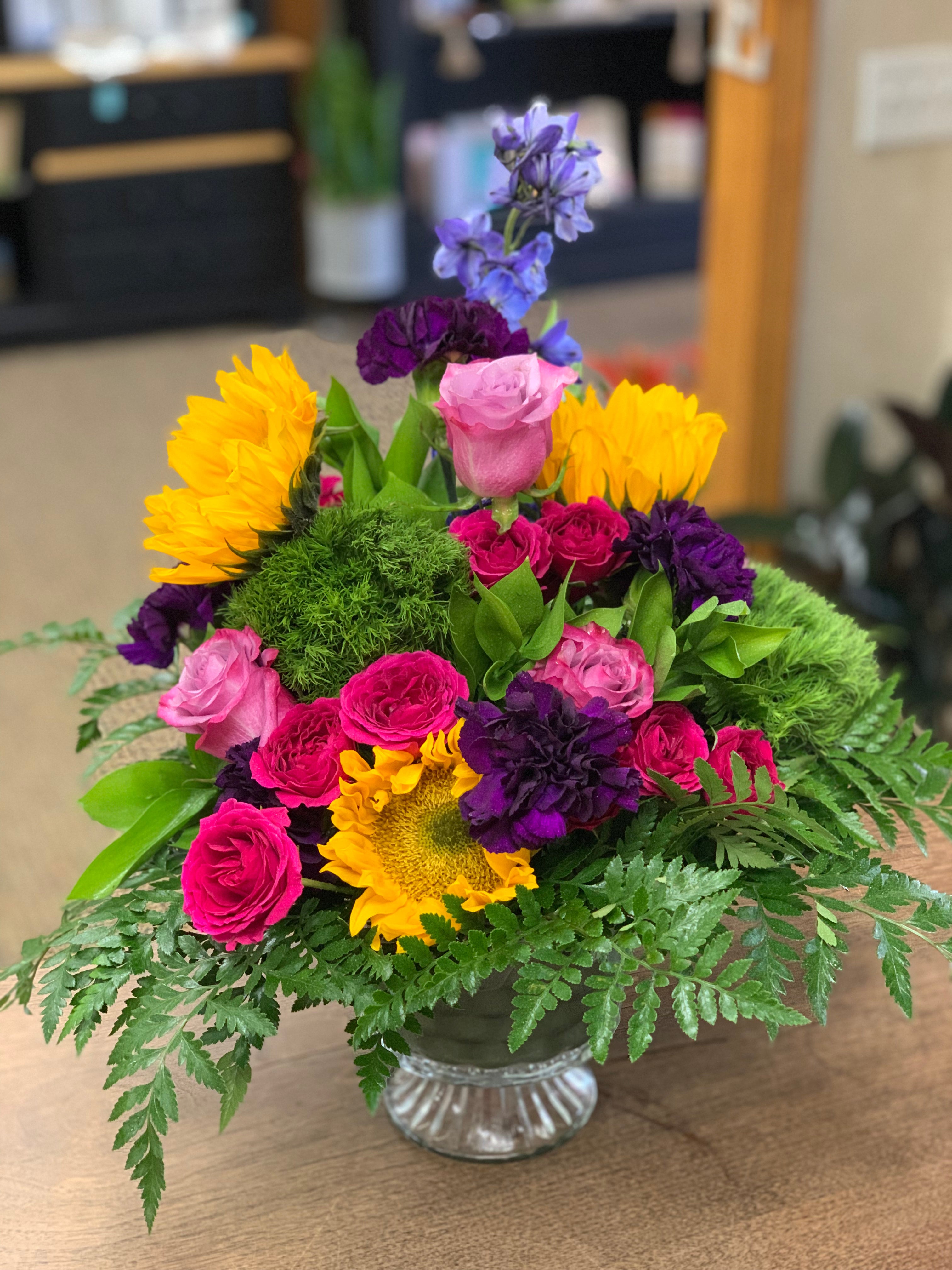 An arrangement of five or more stems. Colors and flowers will vary throughout the year.